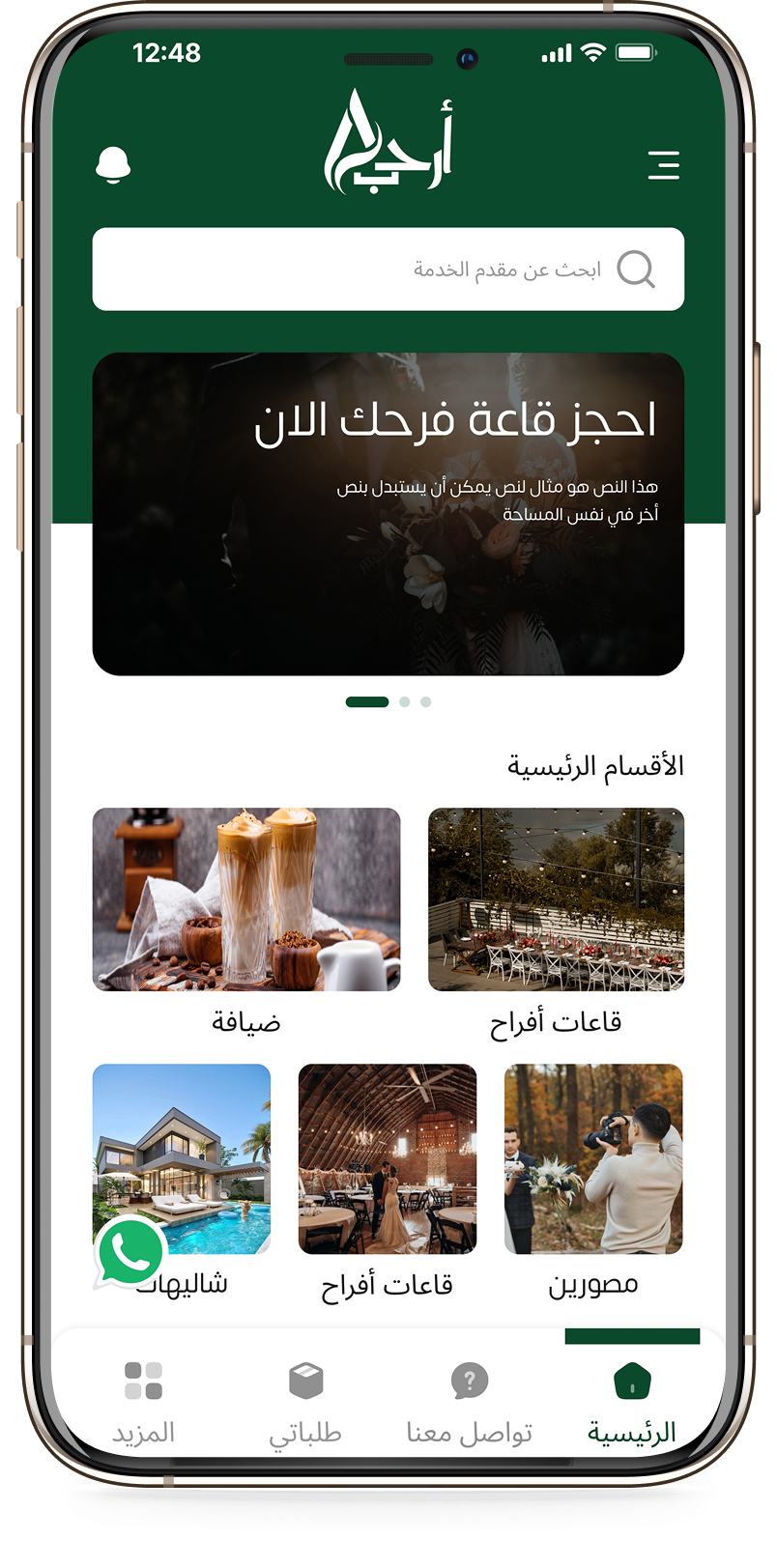 قاعات أفراح، شاليهات، مصورين والمزيد في مكان واحد… اختر، احجز، وارتاح مع أرحب.
